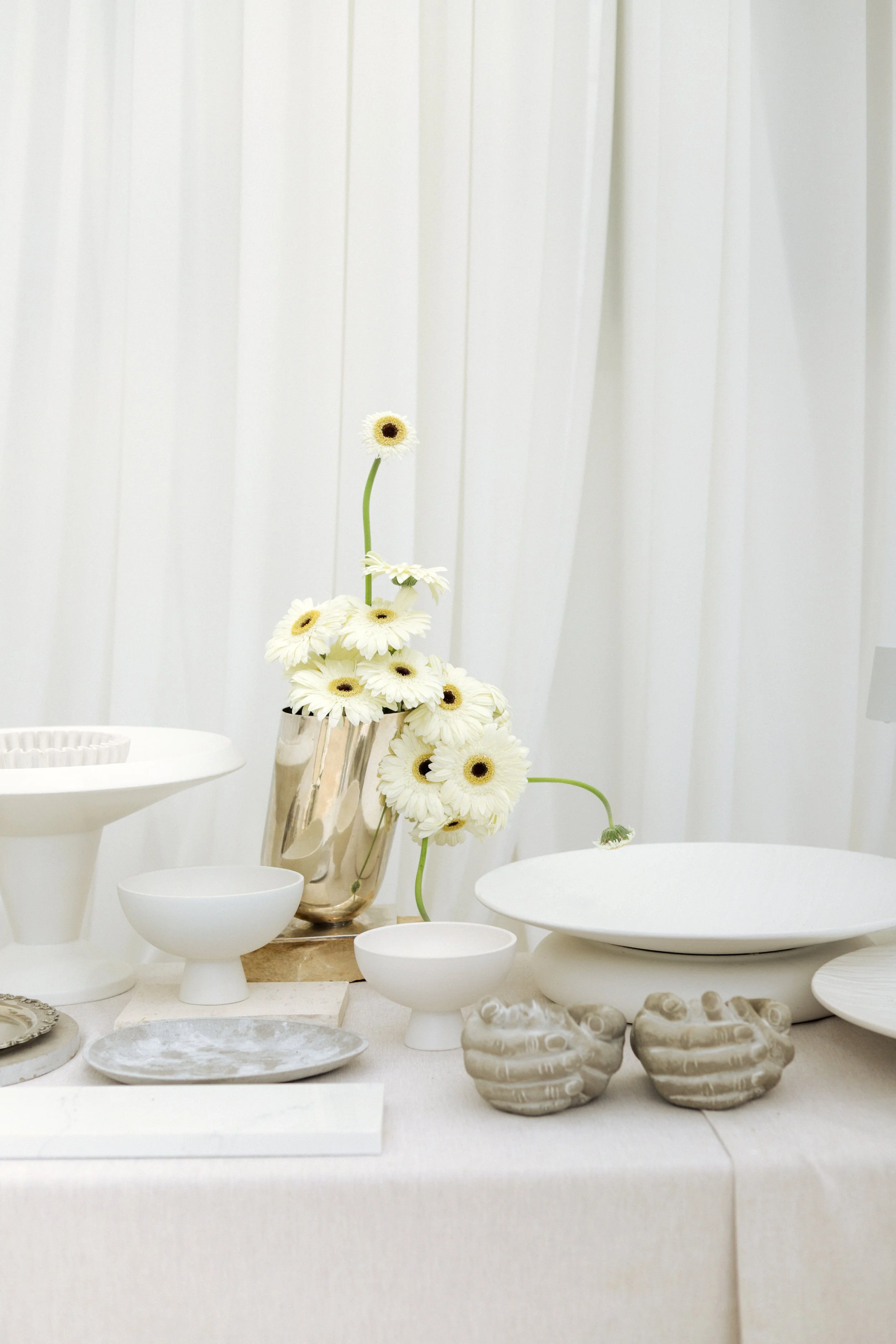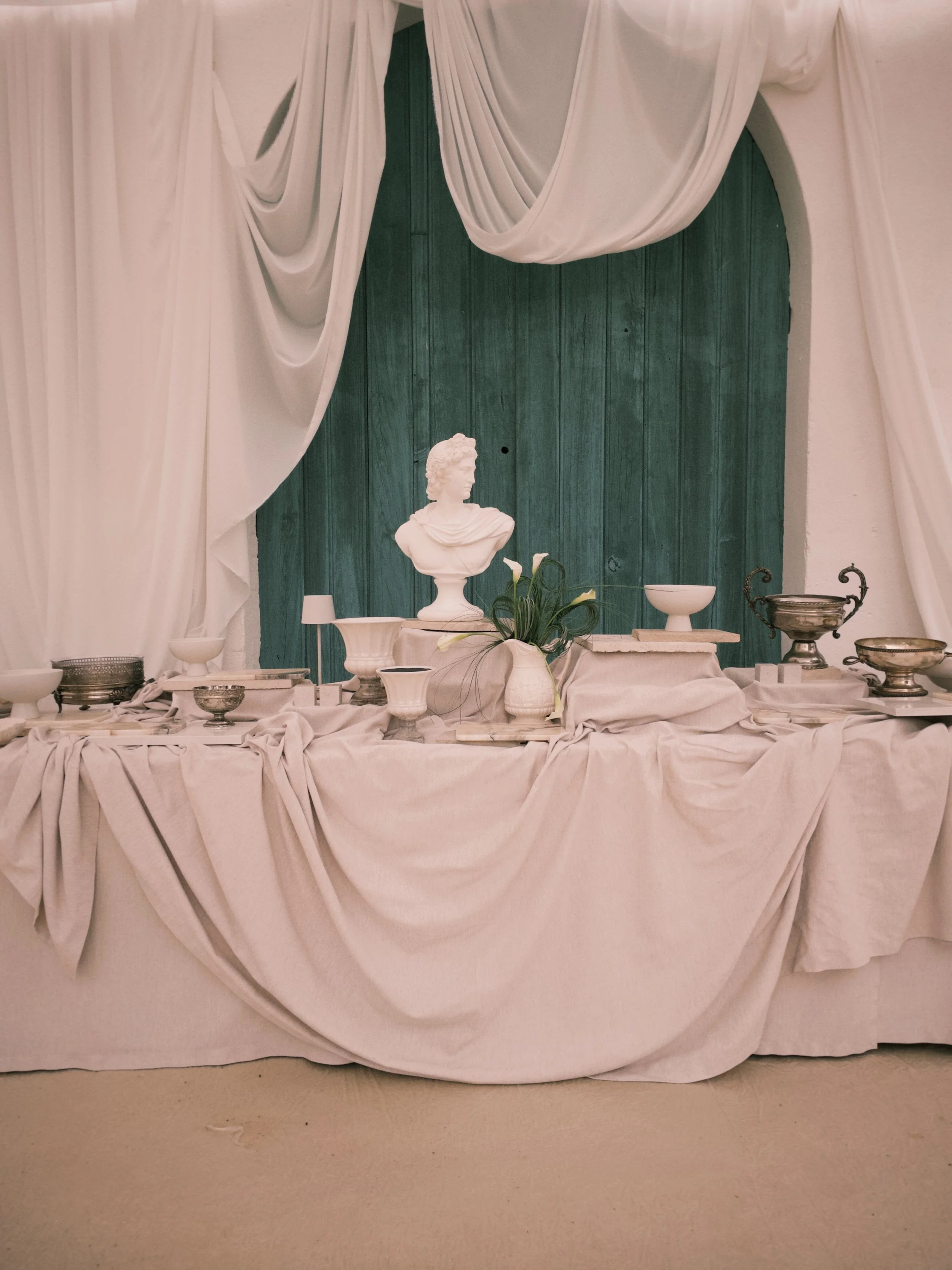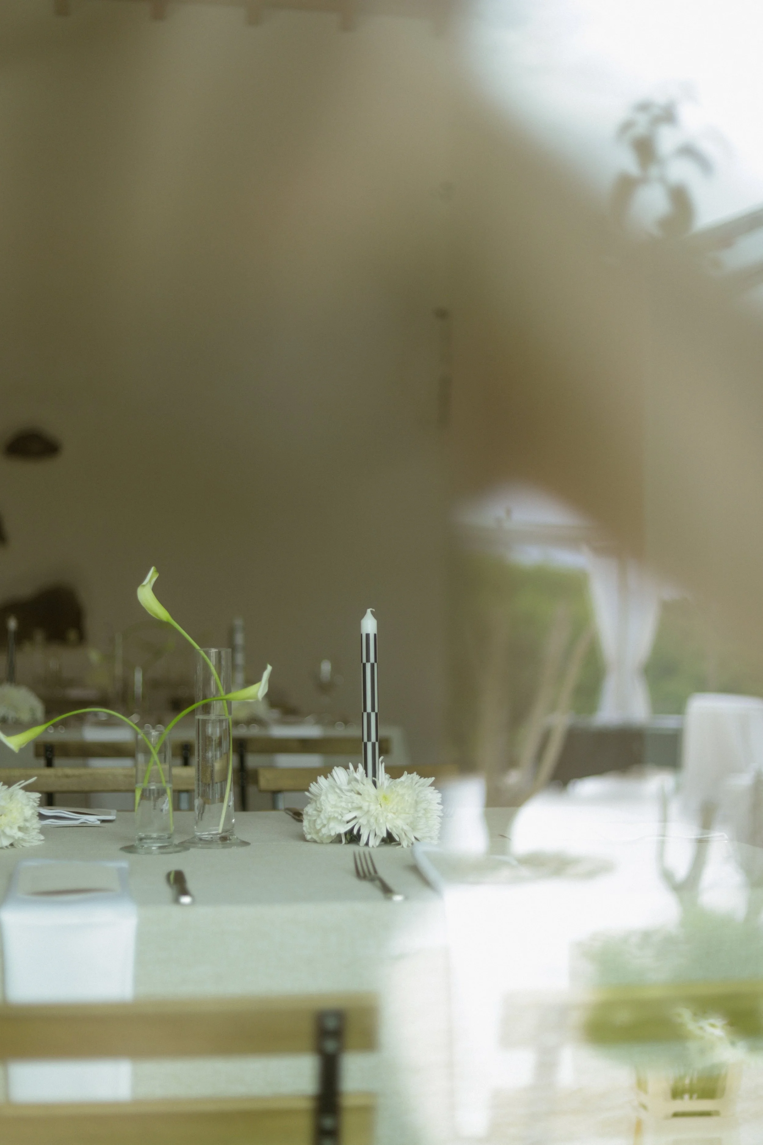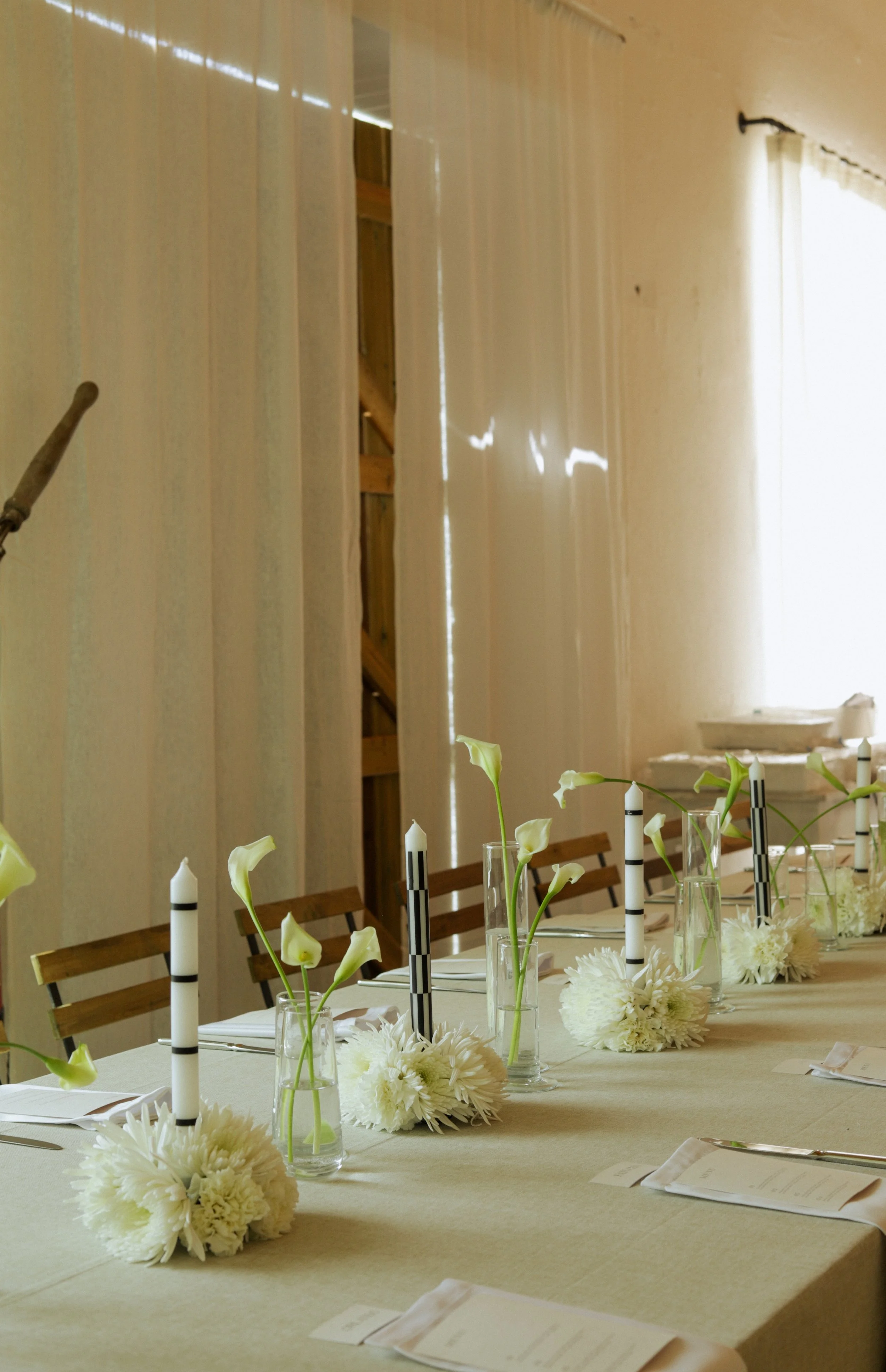 Para as mesas pretendemos equilibrar sobriedade e expressão, através da relação subtil entre luz, sombra e textura. A luz das velas acentua o jogo de contrastes e convida ao convívio num ambiente que é simultaneamente sereno.